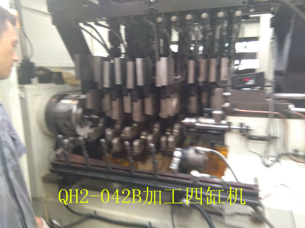 QH2-042變力曲軸圓角滾壓及滾壓校直機床(發(fā)明專利號1823602)是與武漢理工大學(xué)共同開發(fā)的一款高檔數(shù)控設(shè)備。該機床為九鉗直立布置,可以一次性對所有四缸曲軸完成的變力滾壓,自動檢測和自動滾壓校直的加工。該機床帶有測力器,自動檢測工件零位,自動檢測記錄工件加工情況和滾輪破碎自動檢測等功能,可以完全保證工件的加工質(zhì)量。具備與著名德國的圓角滾壓設(shè)備制造商Hegenscheidt公司產(chǎn)品同樣的功能,具有極高的性價比。