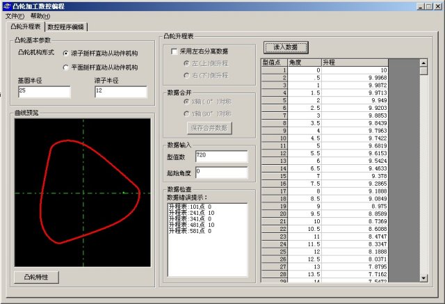 本公司生產(chǎn)的數(shù)控高速曲軸(凸輪軸)銑床采用盤(pán)銑刀點(diǎn)跟蹤方式高速銑削各種非圓截面。為精確加工各種汽油發(fā)動(dòng)機(jī)凸輪軸、柴油發(fā)動(dòng)機(jī)凸輪軸、供油泵凸輪軸等,本公司開(kāi)發(fā)了《凸輪軸加工NC 程序編程系統(tǒng)》軟件。